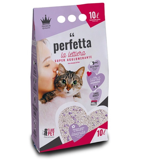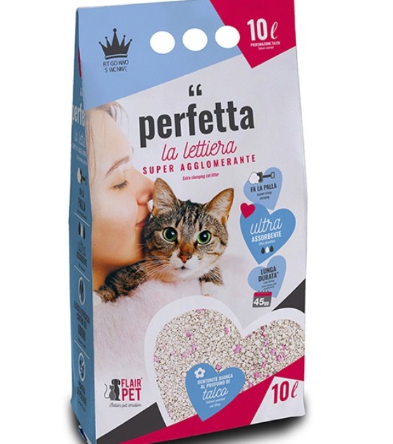 PERFETTA la lettiera super agglomerante di bentonite bianca naturale garantisce un controllo efficace contro gli odori e un alto potere assorbente. Non produce polvere versandola nella vaschetta e non aderisce al pelo e alle zampette del gatto.