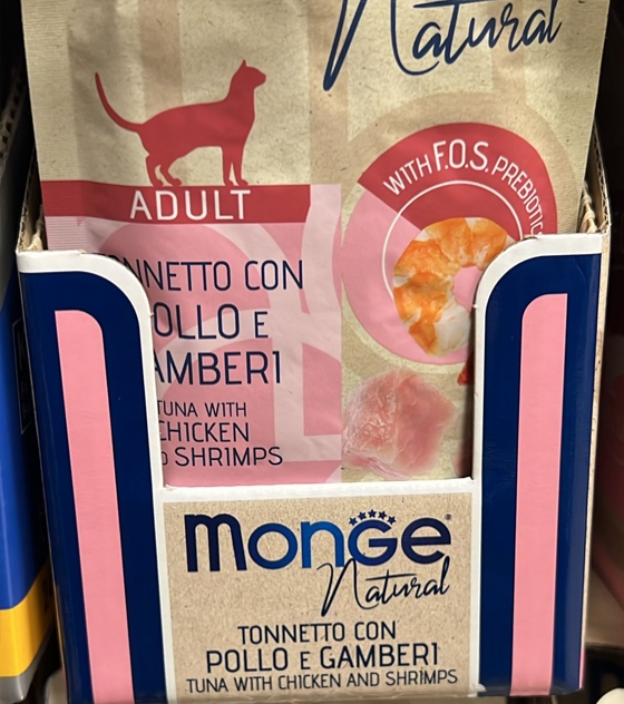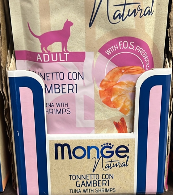 Monge Alimento umido per gatti assolutamente naturale e di alta qualità. Con ingredienti adatti al consumo umano, non contiene prodotti chimici.