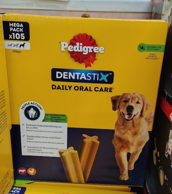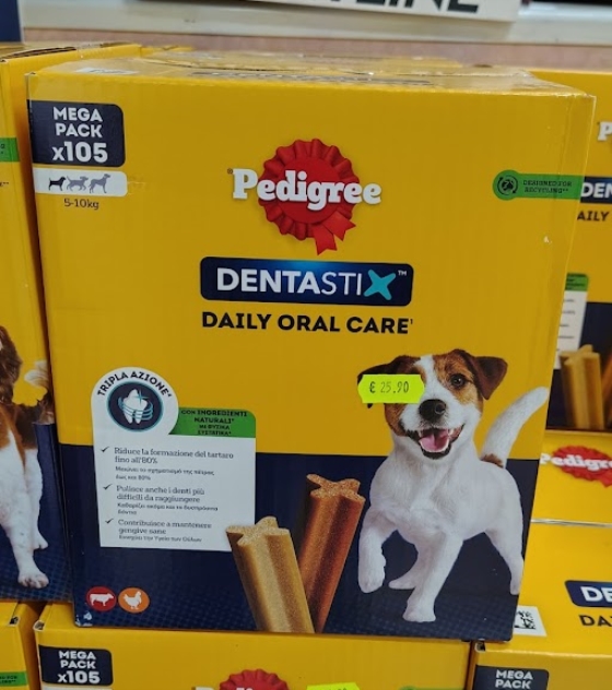Scopri Pedigree Dentastix Medium Multipack x105, lo snack dentale scientificamente provato per l'igiene orale quotidiana dei cani di taglia media. Grazie alla sua speciale consistenza, Dentastix aiuta a ridurre la formazione del tartaro fino all'80%, mantenendo denti sani e gengive forti.