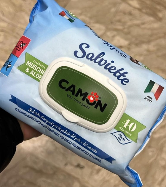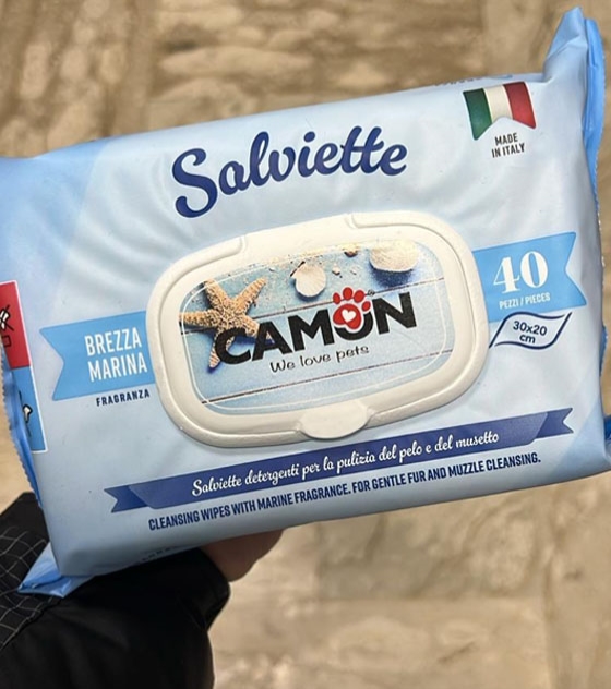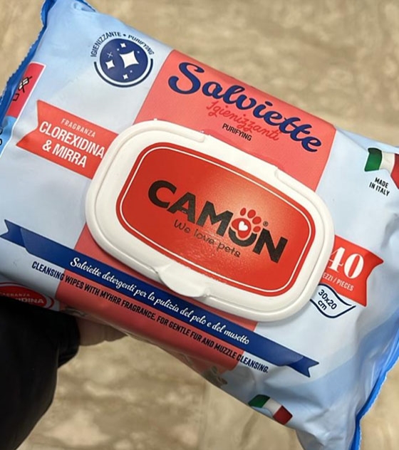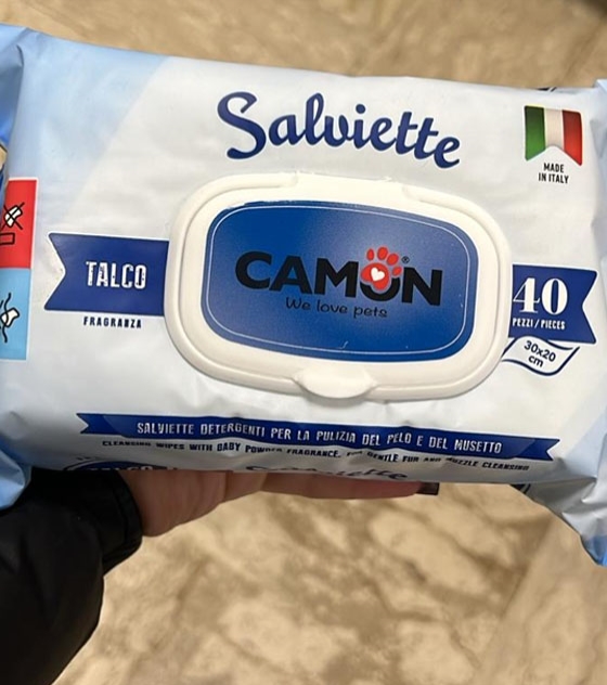 Salviette detergenti per la pulizia del pelo profumate, senza alcol - senza parabeni - indicate per cani e gatti.